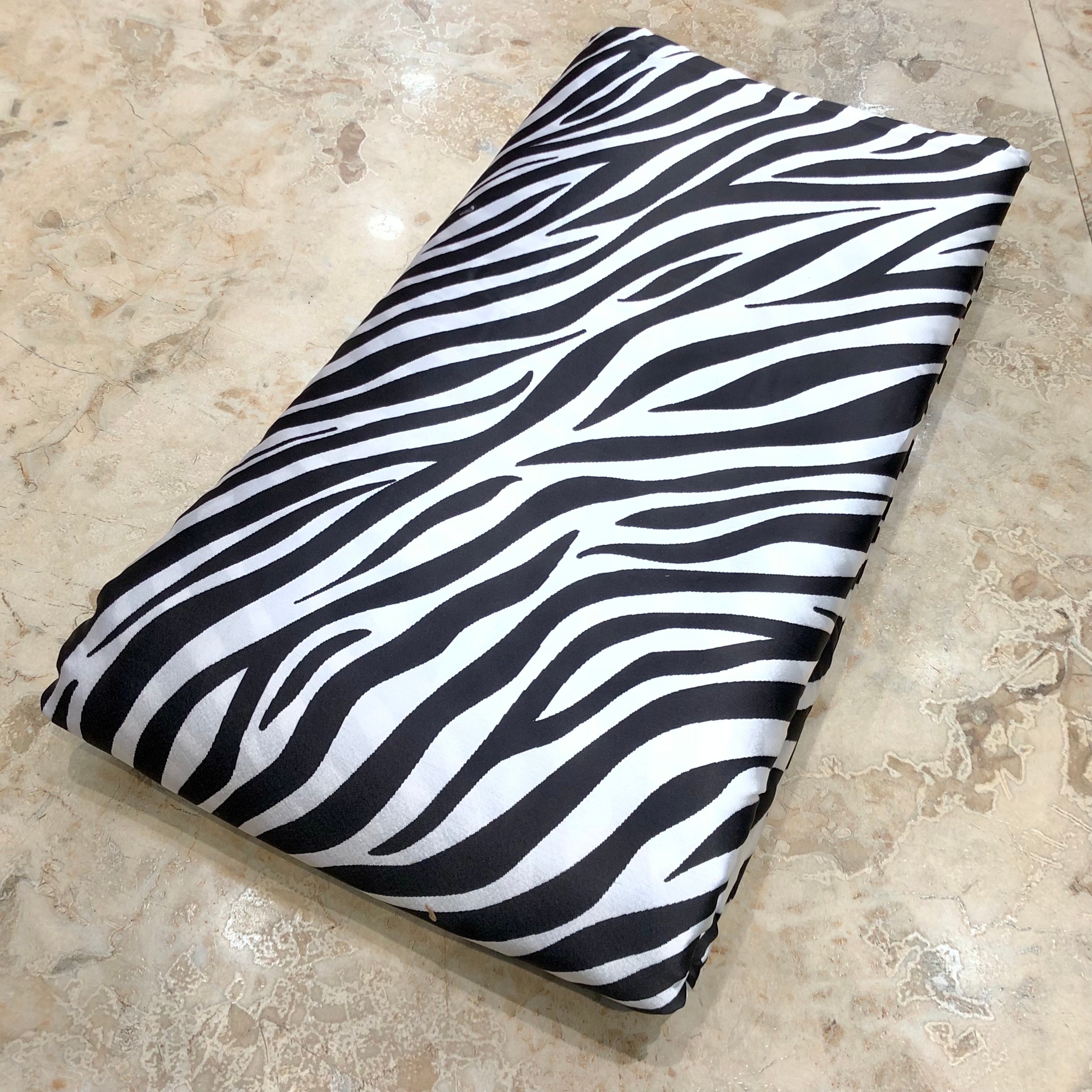 Bring bold elegance to your creations with our Zebra Satin Print Fabric. Crafted from high-quality satin, this 44" wide designer fabric features a striking black-and-white zebra pattern that combines classic monochrome style with a contemporary edge. The smooth, glossy satin surface enhances the print’s vibrancy while providing a luxurious drape that moves beautifully with every fold.